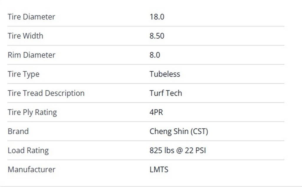 Upgrade Your Ride with the Cheng Shin 18x8.50x8 Tire & 4-Bolt Rims – 5/32 Tread Depth Looking for a reliable, high-performance tire to take your golf cart, utility vehicle, or small equipment to the next level? The Cheng Shin 18x8.50x8 Tire paired with 4-bolt rims is the perfect solution, combining durability, smooth performance, and hassle-free installation in one convenient package. Key Features: Perfect Fit for Your Vehicle: The 18x8.50x8 tire size and 4-bolt rims offer an excellent fit for most standard golf carts, lawnmowers, and other small utility vehicles, ensuring easy installation and improved performance right out of the box. Reliable Traction with 5/32 Tread Depth: Designed with a 5/32 tread depth, this tire provides exceptional grip across various surfaces such as grass, dirt, gravel, and paved paths. Whether you're navigating a golf course or handling outdoor tasks, expect solid traction for a smooth, stable ride. Durability and Longevity: Built with high-quality materials, this tire is designed for long-lasting performance. The 5/32 tread depth ensures that the tire resists wear, so you can enjoy reliable performance through many seasons of use without the need for frequent replacements. Smooth, Quiet Ride: The optimized tread design minimizes vibrations and road noise, giving you a quiet, comfortable ride, whether you're on the course or working around your property. All-Season Versatility: Engineered for a variety of weather conditions, this tire performs well in both dry and wet conditions, making it a versatile choice for all your outdoor needs, from golfing to landscaping and beyond. Why Choose the Cheng Shin 18x8.50x8 Tire with 4-Bolt Rims? Convenience and Value: With the tire and rim already mounted, you’ll save time and effort on installation—just mount and go! Great Performance at an Affordable Price: Offering exceptional performance and durability without breaking the bank, this tire and rim combination provides excellent value for your investment. Ideal for Multiple Applications: Whether you’re using it for your golf cart, utility vehicle, or another small vehicle, this tire and rim package offers superior performance for a wide range of outdoor activities. Enhance Your Outdoor Experience: Make your outdoor tasks easier and your leisure time more enjoyable with the Cheng Shin 18x8.50x8 Tire and 4-bolt rims. With 5/32 tread depth for great traction, durability, and a smooth ride, this combo is ready to handle whatever comes your way, whether you're cruising the course, tackling yard work, or going on your next adventure.